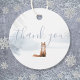 En enkel söt räv tack etikett med en snöig vinterbakgrund och elegant text. Designad av Thisisnotme