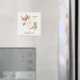 En charmerande magnet har en enkel, men elegant, botanisk design som fångar vintern med ömtåliga blommor och löv. Mortets centrum visningar stolt den hjärtliga hälsning "God julsäsong", som kan vara lätt personlig och även omfatta din familj Namn. Idealisk dekoration eller som en keepsaké-gåva.