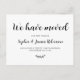 Enkelt Minimalistiskt "Vi Har Flyttat"-Skript Nytt Hem Flyttningsmeddelande Brevkort. Låt dina vänner och familj veta din nya adress med hjälp av detta minimalistiska eleganta vackra handskrivna typsnitts typografi (eller kalligrafi) "Vi Har Flyttat"-text på framsidan och baksidans "Vänligen håll kontakten!"-text i svart och vitt. Lätt att anpassa med dina egna detaljer.
