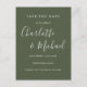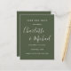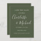 Med stilikoniska namn, detta eleganta olivgröna spara-datum-kort kan anpassas med din speciella händelseinformation i modern vit stil. Designad av Thisisnotme©
