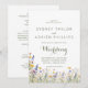 Denna enkla vildblomma fram- och baksida bröllopsinbjudan har romantiska akvarellblommor med elegant kalligrafi och en mjuk boho-känsla. Den lekfulla, rustika designen är perfekt för utomhus-, trädgårds- eller ängbröllop, med en naturlig och tidlös look. QSD119