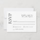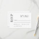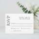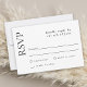 Detta enkla och smakfulla responskort från bröllop har en modern estetik med en elegant och minimal utformning. Ett klassiskt teckensnittsval presenter är en allmän känsla av enkelhet och sofistikering. Det finns matchande produkter för att göra det möjligt för dig att göra en paus i planeringen av bröllop. Anpassa det här kortet med det svarsdatum du behöver.