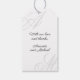 Den här elegant bröllop-favorittaggen är ett bra val för att använda på favoriter, gåvor och semesterdagar i bröllop, förlovningsfest, årsdag party eller dusch. Den har en enkel, modern, minimalistisk design, vackra kalligrafskript som monogram av bruden och trippen på alternativa hörn. Ett tack till ditt meddelande och en brud och en brudgumms namn är centrerat på en vit bakgrund med svart text. Ersätt exempeltexten med önskad text eller behålla med samma enkla meddelande. Var noga med att personalisera namn och monogrammet initialer. Du kan flytta initialer lite lämnat eller höger, uppåt eller nedåt för att anpassa den bästa visningen i det här designformatet genom att välja "Redigera med designmall" som finns grund i textmallen. Då öppnas redigeraren för fullt och du kan visa varje lagrar i designen, markera allt du vill flytta och dra den till ställe. Monogrammen ser bäst ut när de springa något utanför kant. När du anpassar designen i textmallen kan du öppna redigeraren för fullt genom att välja "redigera med hjälp av verktyg" grund i textmallen. På så sätt kan du markera det stora monogrammet initialer och dra det till ställe längs kant.
