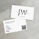 Enkel, minimalistisk, vit design för ditt lilla företag, elegantens typsnitt mot den vita bakgrunden med ditt monogram och en QR-kod tillagd