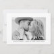 Stilfull, modern "spara datum"-annons visar ditt förlovningsfoto omgivet av en minimal vit ram och orden "Spara Datum" i ett modernt teckensnitt överlagrat. Anpassa framsidan på fotots "spara datum"-kort genom att lägga till era namn, datum för bröllopet och stad/land för bröllopet. Baksidan av "spara datum"-kortet har en helsvart bakgrund med gott om utrymme för att lägga till mer information om ert kommande bröllop. (Den svarta bakgrundsfärgen kan ändras till en färg du väljer)