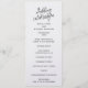 Detta enkla bröllopsprogram har en minimalistisk svart-vit look med handritad skrift. Det är också ett perfekt alternativ som menykort för en avslappnad bröllopsfest. Vi rekommenderar att skriva ut på metalliskt kartongpapper för ett formellt men modernt bröllop eller för ett mer lyxigt utseende.