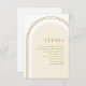 Denna enkla och chic vibrerande bröllopsgästdetaljkort har en modern vit och guld färgad båge. Se denna eleganta brölloppskollektion för koordinerade inbjudningar och vackra posttillbehör.