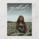 Gratulerar till dina gradgäster och gäster i inbjudan med det här lodrät, ett studenten-vykort med ett foto som innehåller ett modernt och trendigets kalligrafiskript på framsidan och ett anpassade tillbaka för din information om party.