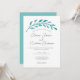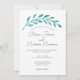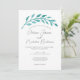 En vacker vattentorg, löv-vinstockar lägger över bröllop parets namn på den här vackra men vackra bröllopsinbjudan till stranden. Denna vackra turkos botaniska inbjudan är klassad och minimalistisk för ett hav bröllop nära havet.elegantens typografi ger en chic för en öceremoni på sommaren.