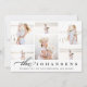 Ett enkelt och elegant-helgdag-fotokort innehåller sex foton i en samlingslayout, med namn och anpassningsbar-meddelande för familjen längs grund i mörk charcol grått. Lägg till ytterligare ett foto på baksidan tillsammans med ytterligare anpassningsbar som tillval. Ett vackert minimalistiskt val som gör att dina helgdag kommer ut ur förpackningen.