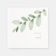Foliage Custom Names Bröllop Cocktail Napkin. Enkelt. Vitt. Eucalyptus vattenfärgsblad. Modern design.