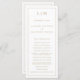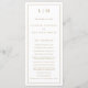 Modern Bröllopsprogram med en enkel men ändå elegant utformning med traditionell layout. Ditt två brev-monogram ligger överst tillsammans med dina detaljer omgivna av ett tunt gräns. All design inslag är faux guld över en vit bakgrund och kan ändras i designredigeringsverktyget i verktyg. En minimalistisk utformning med en klassisk känsla som är underbar för ett formellt bröllop.