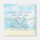 Enkel, modern kalligrafi, elegant blå bröllop spara datum inbjudningsmagnet med silvret rep.