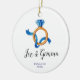 Enkelt blått Förlovning Ring hade ett par Julafton keramiska prydnadsföremål. Anpassa med din anpassningsbar på både framsidan och baksidan.