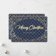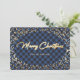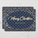 Enkelt blått buffelblad och guld-julkort med faux-guld kalligrafi på svart och blå bakgrund. Anpassa enkelt dessa enkla julkort med din familj namn och text.