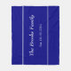 Den här marinblå filten har vit text som kan vara personlig med en familjs namn och det datum då familjen bildades.