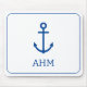 Enkelt blått och vitt nautiskt ankarmonogram musmatta