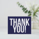 Den här enkla designen har en marin blå bakgrund och säger "Tack"! Anpassa detta med egen bilder eller text genom att klicka på knappen "Anpassa".