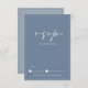 Enkelt Dusty Blue Script-kort - Elegant och minimalt, det här dammiga blåa skriptkortet ger en förfinad bröllop OSA till din kontorssvit. Den har ren typografi och en mjuk blå palett och kompletterar helt moderna eller klassiska bröllop-teman. Perfekt för att samla gästsvar med stil.