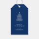 Enkelt Blue Line Art God jul Träd Presentetikett