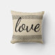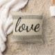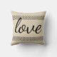 Cute och bondekuddar vid Kärlek! Beige med svart mönster-tryck och ord "kärlek" i ett modernt och trendig-skript.
