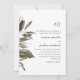 Enkel och vit vattenfärg boho botanical grey bouquet med monogram en fotobröllopsinbjudning.