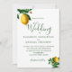 Citronillustration på en vit vintage. Informationen ändras enkelt till din egen anpassningsbar-inbjudan. Monogrammet är enkelt att ändra för initialer Lemon och grönt färg.