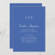 Enkel, botanisk skriptminimalistisk Monogram-bröllopsinbjudning i Royalets Fransk Blue