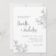 Enkelt botaniskt Monogram Black & White Bröllop Inbjudningar