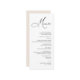 Det här menykortet för anpassadet är designat för att koordinera med vår uppsättning med romska skript i bröllop, och innehåller en rotografitext i ett svepande skript som är parad med ett serieteckensnitt i klass i svart med ett lökigt bakåt med ett anpassade monogram. Matchande objekt är tillgängliga.