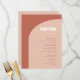 Bröllop-menyn. Minimalistiskt men slående: Använd den här något återskapande typografiska designen av elegant för ditt bröllop-kontorsverk, med modern bågdesign och terracotta och bränd orange färg. Fullständigt anpassade text, färg och bakgrunder.