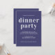 Den enkla och chic middagsinbjudan har vit snyggt, elegant och modern typografi på marinblå bakgrund. Lägg bara till din middag party-information. Enbart designad för dig av Lycklig Dolphin Studio. Om du behöver hjälp eller matchande produkter kontaktar du oss genom vår chatta.