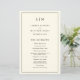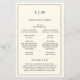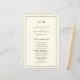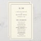 Ett enkelt Bröllopsprogram med en modern utformning av eleganten med två brev-monogram överst och dina detaljer omgivna av ett tunt gräns. All text är svart över en grädda/elfenben bakgrund och kan ändras i designredigeringen i verktyg. Framsidan har din ceremoni och baksidan har din bröllopsfest och tack för ditt budskap. En chic och snyggt som är underbar för ett minimalistiskt par. Dessa bröllopsprogram i billigten trycks på lakan av papper för ett budgetvänligt alternativ.