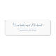 Redigerbar text retur-adressetikett med trendigets chic dammig blå redigerbar typografi på en vit bakgrund. ++++++++++ Enkel att anpassa med dina uppgifter! Du kan ändra färg och teckensnitt för text efter att du har markerat alternativet CUSTOMIZE. ++++++++++++ Ideal för elegant bröllop eller andra formella klassrelaterade händelser.