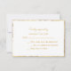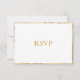 Svarskortets enkelhet gör det vackert och elegant. Utformningen har ett tunt och minimalistiskt, ojämlikt guldfärgat kant med gyllene typografi för anpassadets OSA och ytterligare information om svarskort. En del av den enkla elegance Luxe Guld Kant Bröllop-samlingen.