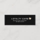 Enkelt Elegant Hjärtförmånskort. Bevara dina lojala kunder med detta enkla Heart Loyalty Card för Elegant - perfekt för små företag, salonger, spa, kaffebutiker och butik. Designat i ett elegant miniformat (3,0 x 1,0 tum) har förmånskortet 5 slagit prickar, och en belöning ges vid besöket i 6e (t.ex. rabatt, gratis produkt eller speciell tjänst). Ett minimalistiskt hjärtikoner och elegant-typsnitt ge detta kort är ett modernt, snyggt utseende. Finns i fyra färg-chic för att matcha ditt varumärke Compact Mini storlek - enkelt att transportera och lagra Anpassade: lägg till ditt företag namn, kontaktinformation eller speciellt erbjuda Underbar för kundbevarande och varumärke