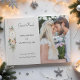 Den här vackra botaniska gästen bok under vintern har buketter av elfenben ro och blommor, röda hollbär, fir och guldsnöflingor som omger en elegant-guld-etikett för ditt monogram på en blek-grått-bakgrund. Innehåller redigerbar fält och fotomall.