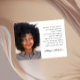 Ett enkelt och minimalt fototack med ett tankeväckande meddelande från studenten och student namn i elegant-skripttypografi.