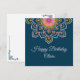 Gult och lila punkt mandala vikt grattis på födelsedagen-kort.
