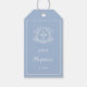 Enkelt Floral Cross på ljusblå aptism Presentetikett