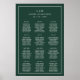 Ett enkelt sittdiagram i bröllop poster en modern utformning av eleganten med två brev monogram, namn och datum med nedanstående diagram, omgivet av ett tunt gräns. Mallen har tre kolumner med tolv bord av åtta gäster som exempel, men kan anpassas efter antalet bord och gäster. All grönt är vit över en skogsbakgrund och kan ändras till valfritt färg i designredigeringsverktyget i verktyg. En chic och snyggt bröllop-sätesutformning som är underbar för ett minimalistiskt par.