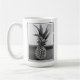 I mugg finns ett svartvitt foto av en ananas med anpassadets textmeddelande på baksidan.