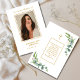 Kortdimensioner: 3,5 x 5 tum. Fotobegravningens sympatikort för minnesbönekort, Design innehåller elegant vattenfärgsgrey löv som ram böner. Enkel att anpassa bild och bön på baksidan av kortet.
