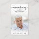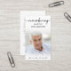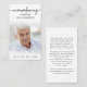 Enkelt fotopapport som påminner om Namn Modern Prayer Card. Behålla minnet av en älskad nära med det här anpassningsbar personlig-bankkortet som innehåller ett uppskattat foto, titeln REMEBERING NAMN, data och ett redigerbart, hjärtligt minnesmeddelande. Med sin enkla klassiska svarta och vita design och moderna handskrivna manuschettbytetypografi gör den en meningsfull keepé för vid en begravning, en minnesstund eller Firande i Life och erbjuder komfort och en varaktig hyllning för familj och vänner. Den lilla och bärbara storleka på 3,5 x 2 tum (plånboksstorlek) gör det bekvämt för nära och kära att bära med sig den som en påminnelse om din älskades liv och själ.