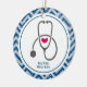 Enkelt Grått-halande stetoscope på Blue Chevron Julgransprydnad Keramik