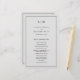 Ett enkelt Bröllopsprogram med en modern utformning av eleganten med två brev-monogram överst och dina detaljer omgivna av ett tunt gräns. All text är svart över en lätt grått-bakgrund och kan ändras i designredigeringsverktyget verktyg. Framsidan har din ceremoni och baksidan har din bröllopsfest och tack för ditt budskap. En chic och snyggt som är underbar för ett minimalistiskt par. Dessa bröllopsprogram i billigten trycks på lakan av papper för ett budgetvänligt alternativ.