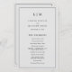 Ett enkelt Bröllopsprogram med en modern utformning av eleganten med två brev-monogram överst och dina detaljer omgivna av ett tunt gräns. All text är svart över en lätt grått-bakgrund och kan ändras i designredigeringsverktyget verktyg. Framsidan har din ceremoni och baksidan har din bröllopsfest och tack för ditt budskap. En chic och snyggt som är underbar för ett minimalistiskt par. Dessa bröllopsprogram i billigten trycks på lakan av papper för ett budgetvänligt alternativ.