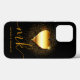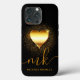 Guld hjärta över svart bakgrund med eget namn och monogram.