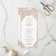 Det här bröllopsprogrammet blandar minimalistisk charm med en raffinerad palett för guld och rosa färg. Parets namn i ett känsligt gyllene ram, mot en mjuk rosa som förmedlar värme och romantik. Baksidan visningar elegant detaljerna kring bröllop, accentuerade med subtila gyllene högdagrar. Kombinationen av rosans trevliga elegans och guld tidlösa lyxvara skapar en enkel men sofistikerad utformning, perfekt för modernt bröllop med romantisk beröring.