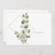 Begravningstack. Familj namn och tack på baksidan. Typografi. Vit bakgrund. Foliage. Enkelt. Eucalyptus. Guld text.